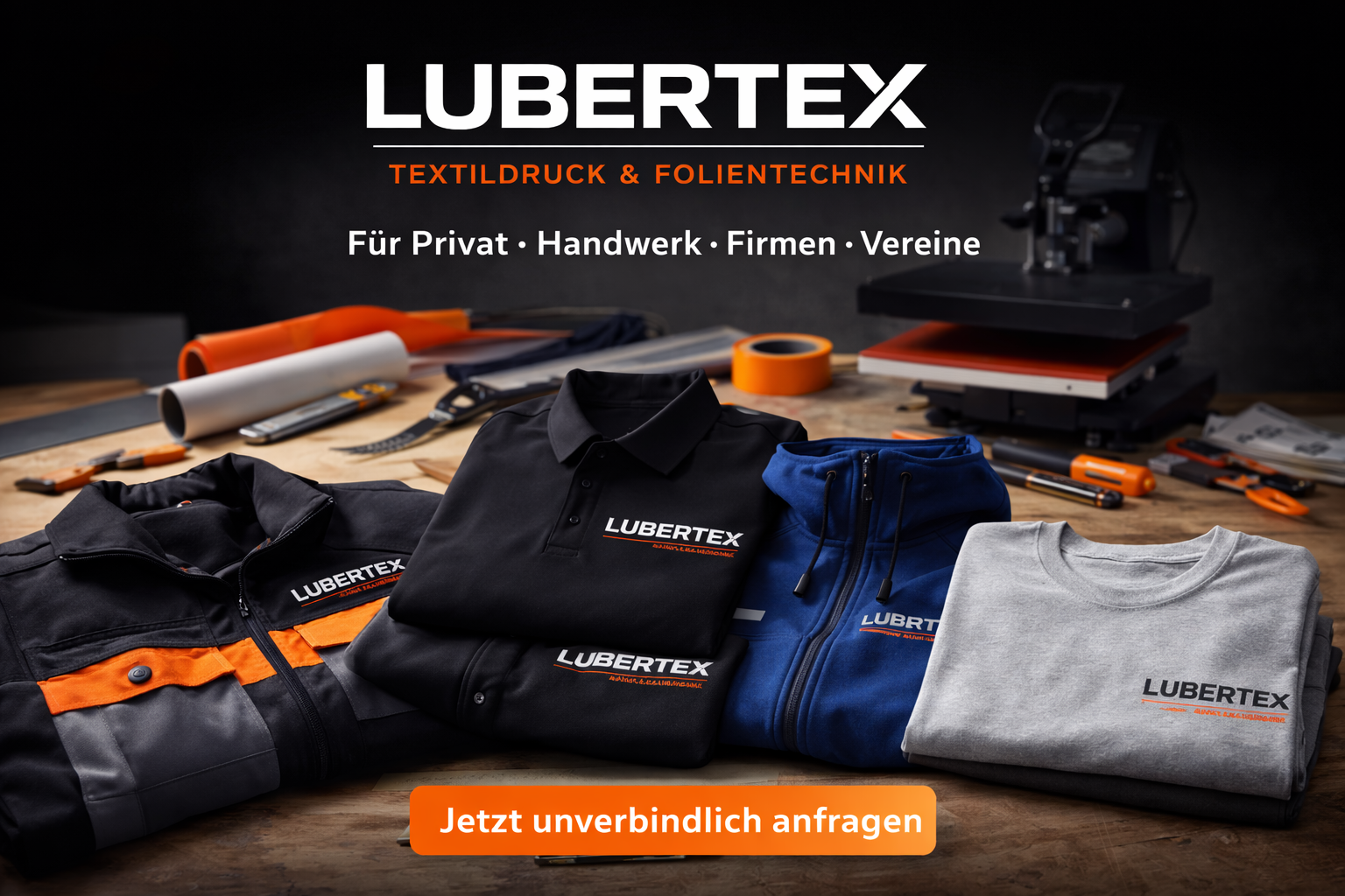 Bei LUBERTEX erhalten Sie professionelle Lösungen rund um Textildruck und Beschriftungen. Wir setzen Projekte zuverlässig um – von der persönlichen Anfrage bis zum fertigen Produkt.